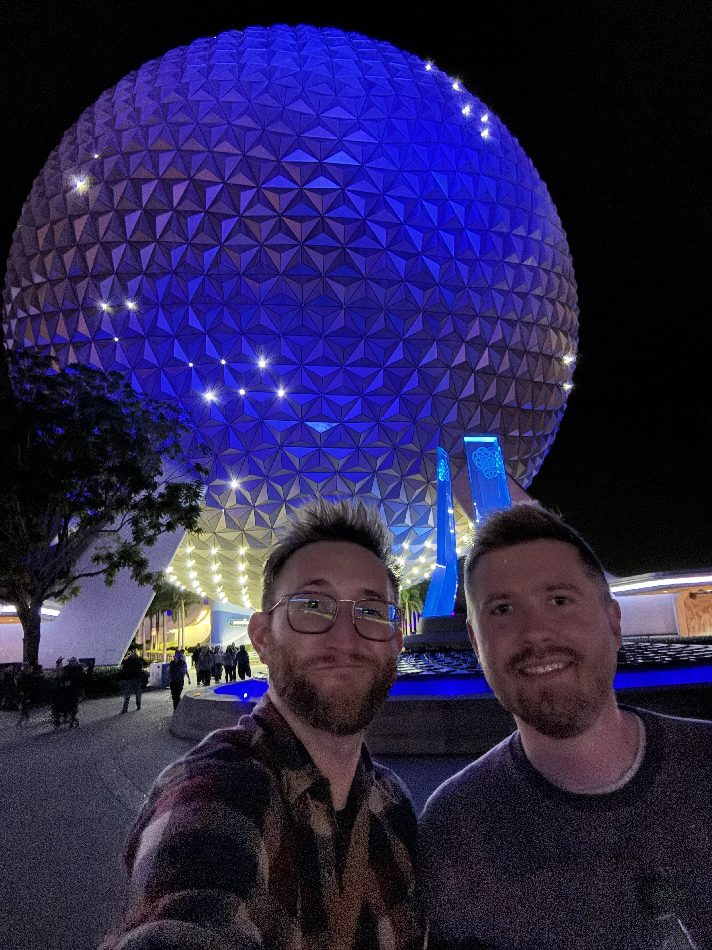 Adam planned a trip to Disney World with a secret agenda. The morning of the 31st started in EPCOT, where they spent the day walking around the World Showcase, visiting every country before finding themselves at a cozy steakhouse in Canada. After dinner, they made their way to the lake in search of the perfect spot for the midnight fireworks.